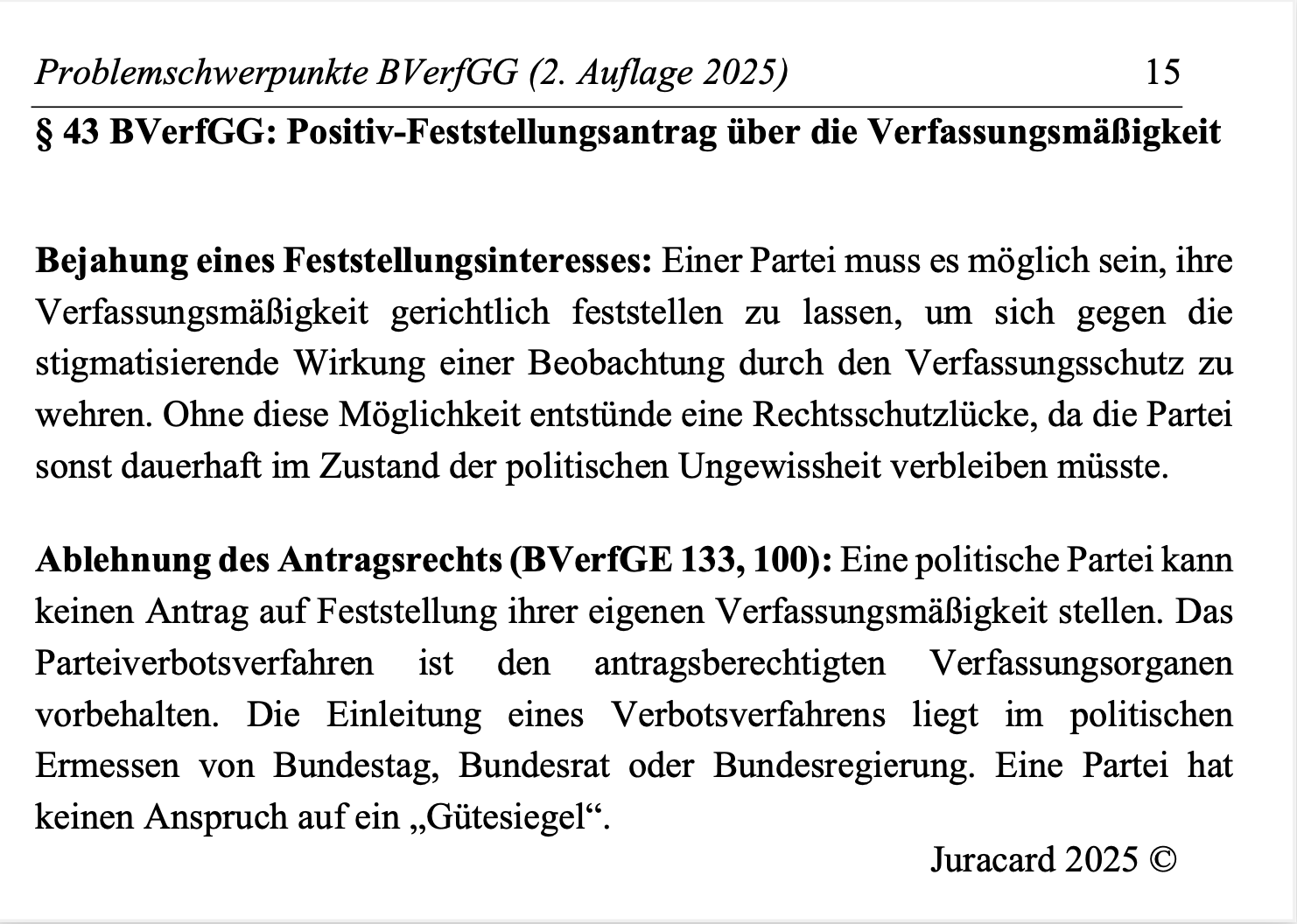 Lerne die wichtigsten Streitfragen des Verfassungsprozessrechts – kompakt und verständlich dargestellt. Diese Sammlung enthält 37 zentrale Meinungsstreitigkeiten zwischen Literatur und Rechtsprechung, klar strukturiert für die gezielte Vorbereitung auf Klausuren und das Examen.