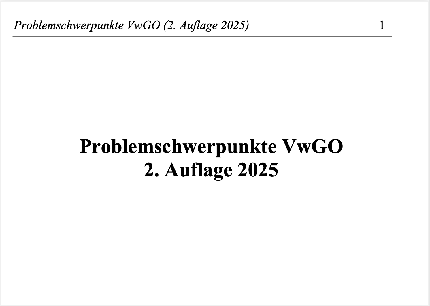 ✅ Problemschwerpunkte VwGO (2. Auflage 2025) – Alles zum Ablauf des verwaltungsgerichtlichen Verfahrens.