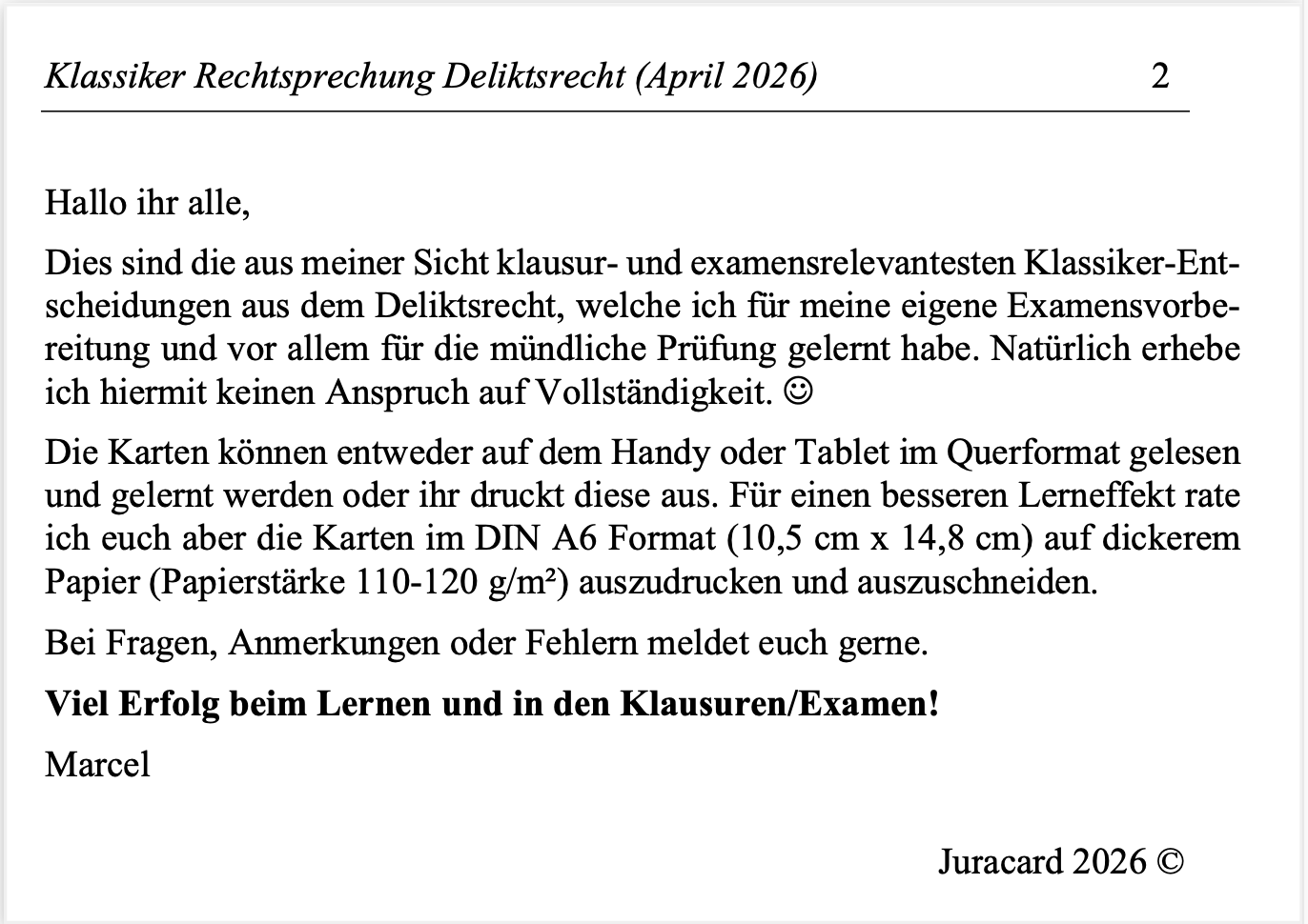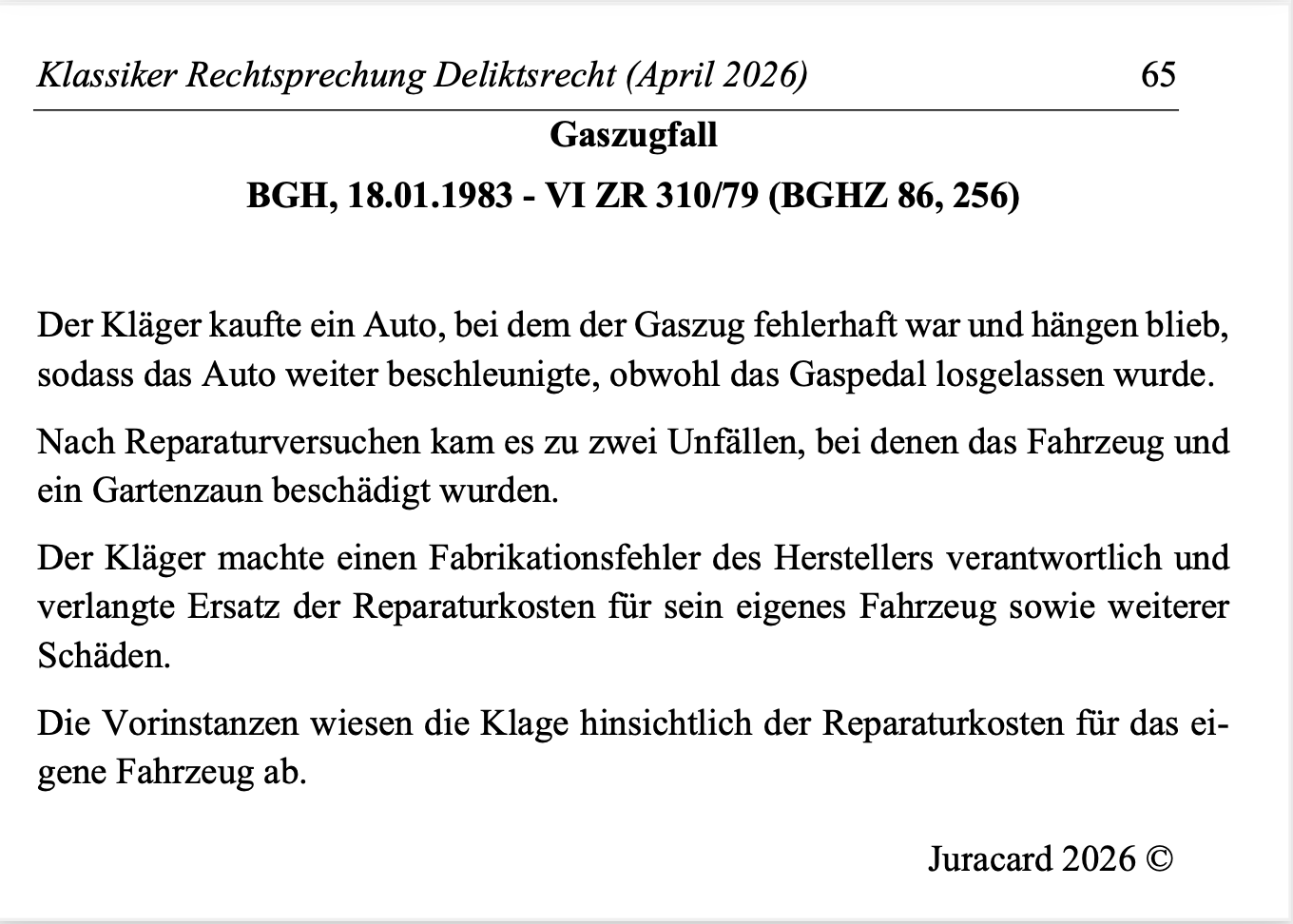 Rechtsprechungs-Klassiker Deliktsrecht – 42 Urteile als PDF und Anki!