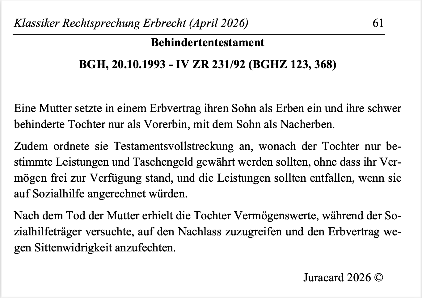 Rechtsprechungs-Klassiker Erbrecht – 40 Urteile als PDF und Anki!