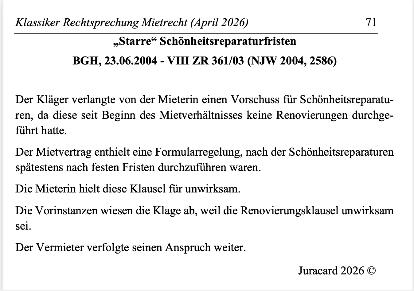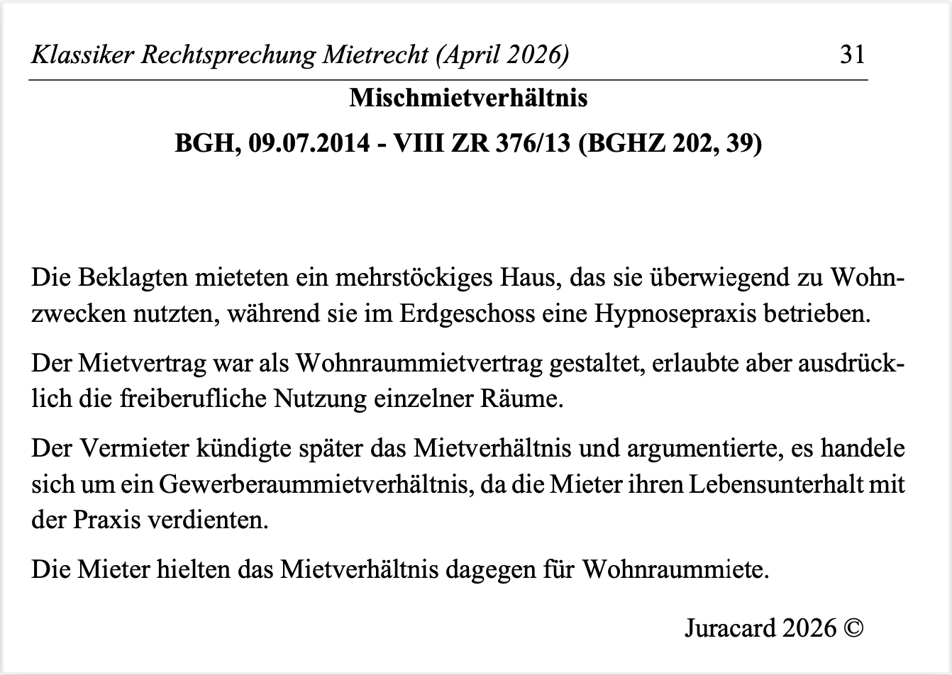 Rechtsprechungs-Klassiker Mietrecht – 44 Urteile als PDF und Anki!