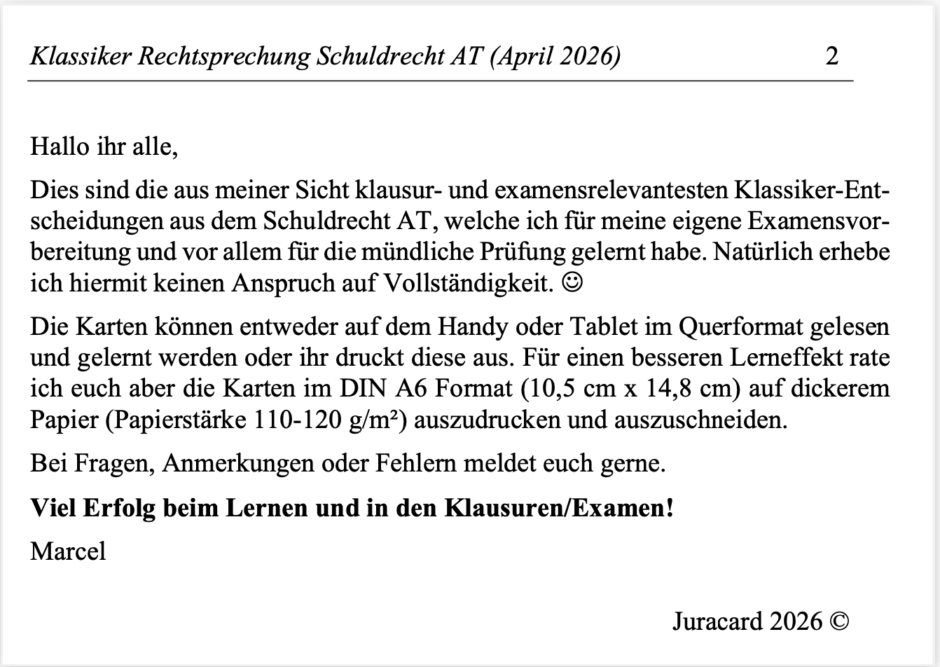 Rechtsprechungs-Klassiker Schuldrecht AT – 50 Urteile als PDF und Anki!