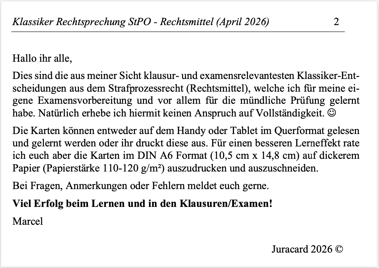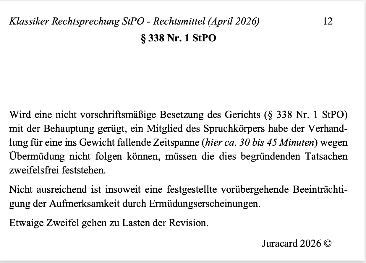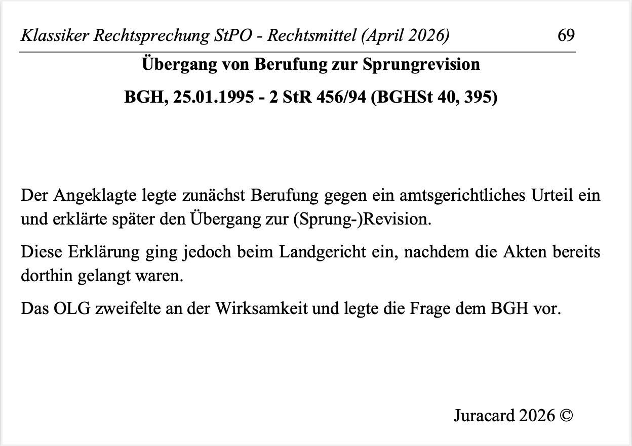 Rechtsprechung Klassiker StPO (Rechtsmittel) – 42 Urteile als PDF und Anki!