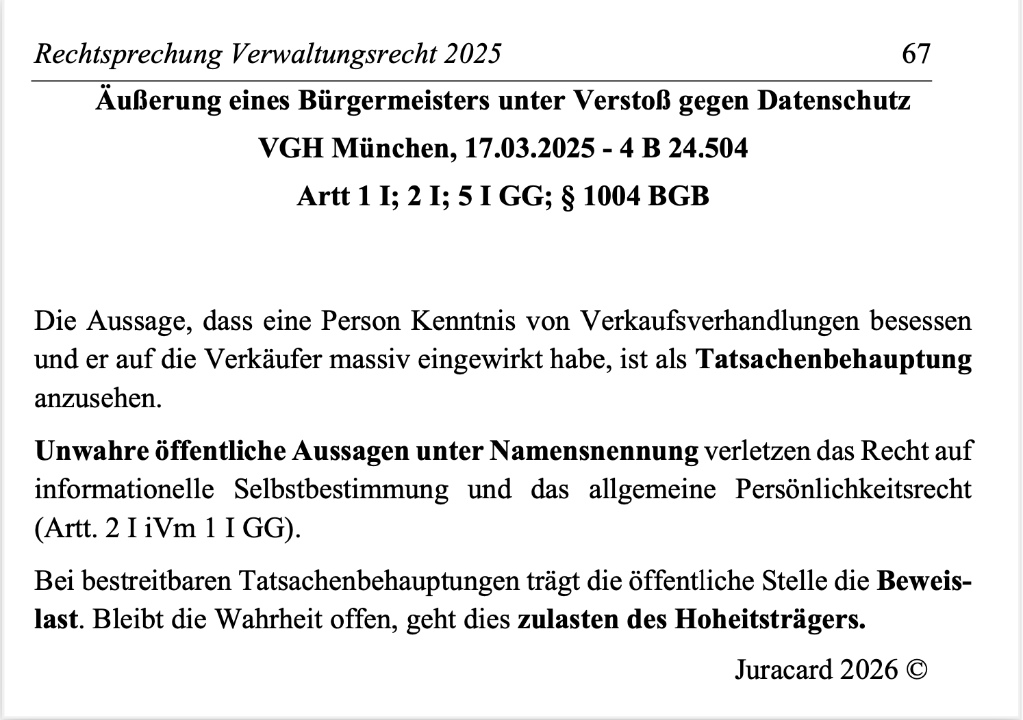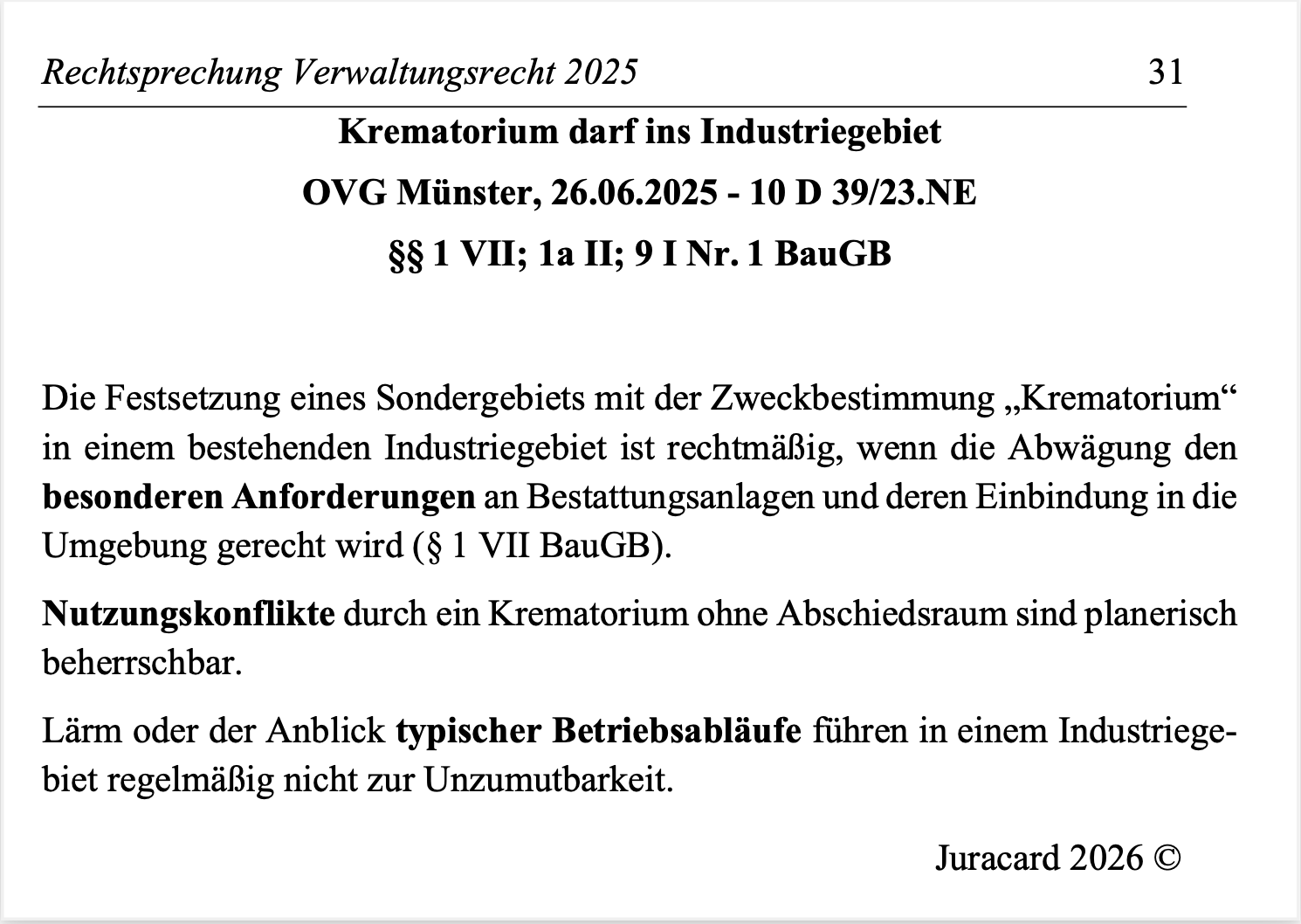 Diese PDF und Anki-Datei enthält die 89 aus meiner Sicht klausur- und examensrelevantesten Entscheidungen aus dem Verwaltungsrecht aus 2025 – kompakt aufbereitet und ideal zum Lernen.