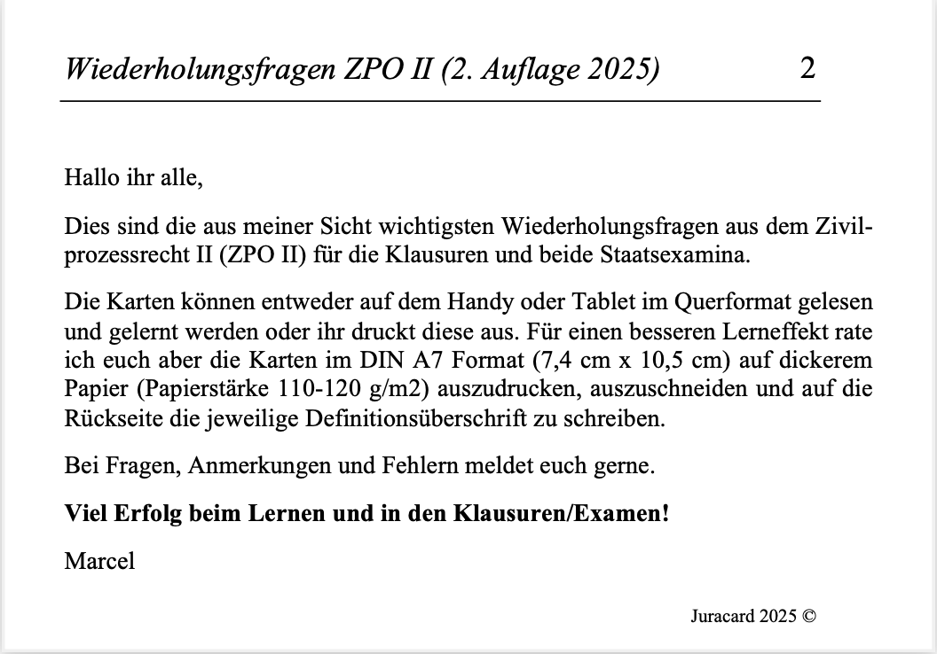 Wiederholungsfragen ZPO II (2. Auflage 2025) – 435 Fragen als PDF und Anki!